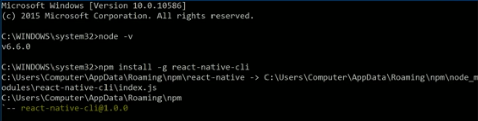 - Open command prompt and type npm install -g react-native-cli